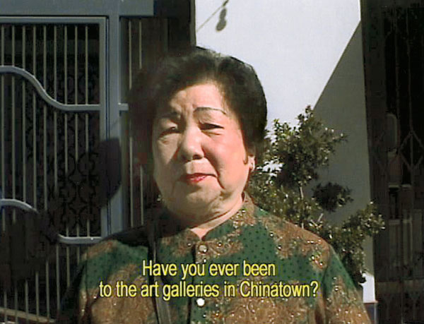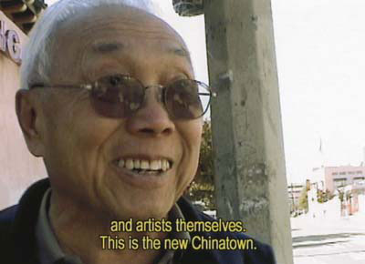 In the lower Gallery she will screen "It's Chinatown" In this video Cowin steps out of the comfort zone of her studio to interview people she encounters in Chinatown about the changing nature of the neighborhood. This short candid video tells it like it is, revealing the relationship between local residents, tourists and the growing art community. Eileen Cowin's work has been shown worldwide in over 30 solo exhibitions and in more than 165 group exhibitions. In 2000,"Still (and all) Eileen Cowin 1971-1998," curated by Sue Spaid, opened at The Armory Center for the Arts, Pasadena, California. The exhibition was accompanied by a publication. Cowin has received numerous awards, among them are Individual fellowships from the National Endowment for the Arts(1979,1982,1990), a commission from the Public Art Fund in New York, an Individual Artist Grant from the City of Los Angeles (1997) and a Completion Grant, from The Durfee Foundation (2000) and an Artist's Fellowship in New Genres from the California Community Arts Foundation. Eileen Cowin was commissioned by the Los Angeles County Museum of Art to do a billboard for Made in California and was selected to be the inaugural artist for the Metro Rail Light Boxes in Los Angeles. Eileen Cowin's videos have been included in the USAFilm Festival(award for best experimental film), The Los Angeles International Short Film Festival and the New Orleans Film Festival. For more information about her work visit www.eileencowin.com |
