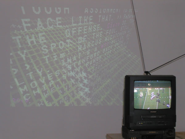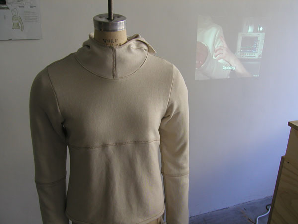 Ayah Bdeir At the frontier, our liberty is stripped away... we enter the universe of control....We submit to scrutiny, to inspection, to judgment. We must be passive, docile. To be otherwise is to be suspect." ‹Salman Rushdie, Step Across This Line <random> search is a subtle, reactive undergarment. It records, shares and analyses the experience of invasive airport searches on behalf of our silent, abiding, fearful bodies. Kelly Dobson Machine Therapy is a new practice combining art, design, psychodynamics, and engineering work in ways that access and reveal the vital relevance of gut-level subconscious elements of people's interactions and relationships with and through machines. John Rothenberg Project: They're Live description: "They're Live" is a real-time remix of live television. It is a computer program that looks at the television signal as a stream of text, searching for products. It responds to this incoming feed by translating the Closed Captions into its own pseudo-language of brand names, and capturing video only when it thinks a commercial is showing. It presents this revised content graphically through dynamic typographic and illustration, and it's goal is to turn all of the television signal into one continuous, semi-legible commercial. "They're Live" is designed and programmed by John Rothenberg of sosolimited, an audiovisual collective specializing in live cinematic remixes of broadcast media. Kelly Dobson Kelly Dobson's Machine Therapy is a new practice combining art, design, psychodynamics, and engineering work in ways that access and reveal the vital relevance of gut-level subconscious elements of people's interactions and relationships with and through machines. For "Play Nice," two re-appropriated domestic devices are offered -- a 1940's blender and toaster -- to interact with people. They are responsive to people who attempt to make with their own voices the sounds that these machines make. For example, the physical violence, the implicit energy and indeed danger of many machines, so elegantly dissimulated by their physical design, escapes as a scream. The scream is an unintentional side- element of many machines, including our home blenders. Blendie, a vintage beehive blender altered to require a person interacting with it to make with their own voice the sound the blender makes, intentionally foregrounds this side element and makes it available for play and reflective use. Blendie will respond to a person's voice if the rough growling or screaming sound of the blender's motor in action is presented through the vocalization of the person. If so, Blendie will then empathize with the person by adjusting its own motor speed to match the dominant pitch and power of the person's voice. Gemma Shusterman "Manimal" is a series that situates the human as animal. "SuperElephant" consists of a costume that allows people to experience a sense possessed by elephants that is not possessed by humans. The elephant-inspired costume investigates the pachyderms' ability to detect infrasonic and seismic vibrations. "Faunacise: exercise for the animal behind the desk" is a series of exercises, based on animal movements, that intervenes against technologically based physical lethargy. "SuperCloaca" A site specific piece in which the artist engages with the turtles in the pond. Noah Vawter Ambient Addition is a Walkman with binaural microphones. A tiny Digital Signal Processing (DSP) chip analyzes the microphone's sound and superimposes a layer of harmony and rhythm on top of the listener's world. In the new context, some surprising behaviors take place. Listeners tend to play with objects around them, sing to themselves, and wander toward tempting sound sources. The pattern of audio processing is composed to create a song-like sense of anticipation. With Ambient Addition, I'm hoping to make people think twice about the sounds they initiate as well as loosen up some inhibitions. Adam Whiton and Yolita Nugent In our work, we attempt to develop technologies that perform desired functions yet act as vehicles for social dialogue. The tradition of clothing and fashion has tended to place women in positions of vulnerability. We are interested in exploring the boundaries of the clothing and technology and its transformation of the body; physically, socially and culturally. The No-Contact Jacket is a wearable defensive jacket charged with high voltage electricity at the press of a button. The jacket consists of a multi layered system to insulate the wearer while electrically conductive fibers deliver the current to any unauthorized contacts. Designed to deter physical assault the Jacket functions as an implement for survival, empowerment, and identity. The IPV Clothing System is a physical abuse sensing garment coupled with an artificial intelligence program to categorize the impacts and forces on the wearer's body. The physical abuse data is transmitted to a remote server where it can be viewed in near real-time, archived or distributed to one's friends and family, a trusted peer community or proper authorities. The wearer also has the option of "chatting" with the A.I. as a means to assist the victim in the process of self realization. |